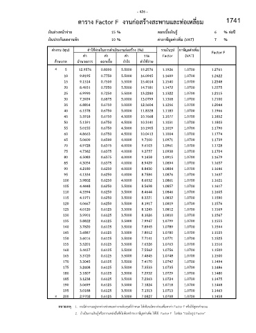 ค่างาน (ทุน) ค่าใช้จ่ายในการด าเนินงานกอสร้าง (%) รวมในรูป ภาษมูลค่าเพม Factor F