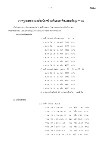 มาตรฐานขนาดละนๅ้าหนักหลใกสริมคอนกรีตละหลใกรูปพรรณ