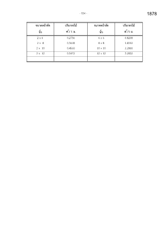- 134 - 1878 ຌ ຌ ༛༛༛༛༛ขนาดหนาตัด ปริมาตรเมຌ ขนาดหนาตัด ปริมาตรเมຌ 3 3 นิๅว ฟ / 1 ม. นิๅว ฟ /1 ม. 2 x 6 0.2736 6 x 6 0.8208 2 x 8 0.3648 8 x 8 1.4592 2 x 10 0.4560 10 x 10 2.2800 2 x 12 0.5472 12 x 12 3.2832