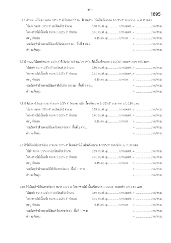 7.7 ฝງาระนงเมຌมะคาขนาด༛1/2"x 3" ตีวຌนรอง༛0.5 ซม. ครงคราว༛เมຌนืๅอขใงขนาด༛1-1/2"x3" ระยะหาง༛c/c 0.50 มตร