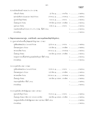 นๅ้าผสมปูนกอ༛จ้านวน 4.95 ลิตร @..0.0164.. บาท/ลิตร = .......................บาท/ตร.ม.