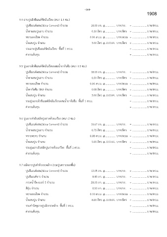 นๅ้าผสมปูน༛จ้านวน 8.00 ลิตร @..0.0164.. บาท/ลิตร = .......................บาท/ตร.ม.