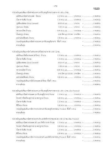 นๅ้าผสมปูน༛จ้านวน 6.00 ลิตร @..0.0164.. บาท/ลิตร = .......................บาท/ตร.ม.