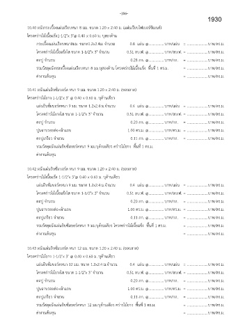 ผนยิบซมบอรดหนา༛12 มม. ขนาด༛1.2x2.4 ม.จ้านวน 0.4 ผน @....................บาท/ผน = .......................บาท/ตร.ม.