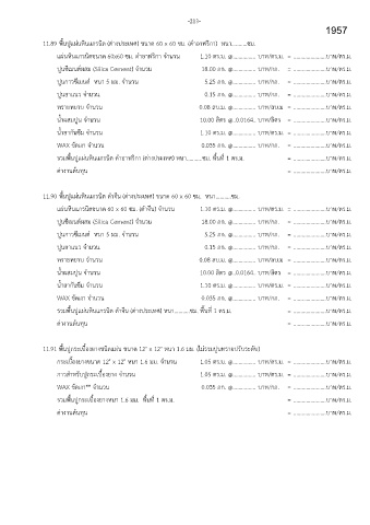 ปูนซีมนตຏผสม༛(Silica Cement) จ้านวน 18.00 กก. @................ บาท/กก. = .......................บาท/ตร.ม.