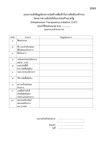 แบบการแจงขอมูลโครงการก่อสร้างเพื่อเขารับการคัดเลือกเข้าร่วม