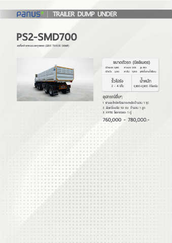 TRAILER DUMP UNDER PS2-SMD700 (SEMI TRAILER DUMP) ( ) 2,550 7,510 800 2,430 7,000 ( ) 2 - 4 6,800-6,900 1. 1 2. 50 . 1 3. HYFIX 1 760,000 - 780,000.-