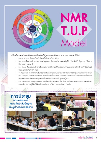 โรงเรียนมีแนวทางในการบริหารสถานศึกษาโดยใช้รูปแบบการบริหาร N.M.R TUP. Model ซึ่งได้แก่