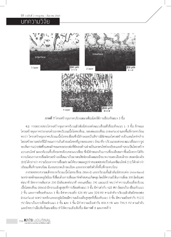 และยังพบว่าเมื่อเพิ่มชั้นแนวเชื่อม ท�าให้ความแข็งเพิ่มขึ้น ดังภาพที่ 8 และภาพที่ 9