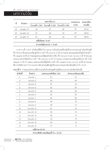 ล�าดับที่ ตัวอย่าง ผลคะแนนหลังเรียน (50) ค่าคะแนนร้อยละเฉลี่ย
