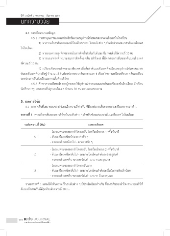 5.1 ผลการสั่นที่เหมาะสมของล�าโพงเมื่อความถี่ต่างกัน ที่มีผลต่อการสั่นของดอกมะเขือเทศ ตารางที่ 1