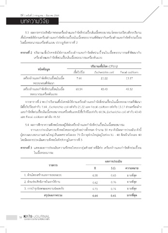 จากตารางท 2 พบว่าปริมาณเช้อโรคหลังใช้งานเคร่องล้างและกาจัดส่งปนเปื้อนในเน้อหอยนางรมท่พัฒนา
