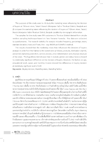 The purposes of this study were to: 1) study the marketing mixes influencing the decision