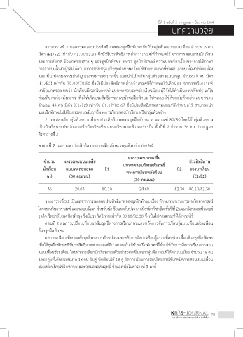 (E1/E2) เท่ากับ 70.00/78.50 ซ่งยังมีประสิทธิภาพตากว่าเกณฑ์ท่กาหนดไว้เล็กน้อย จากการวิเคราะห์