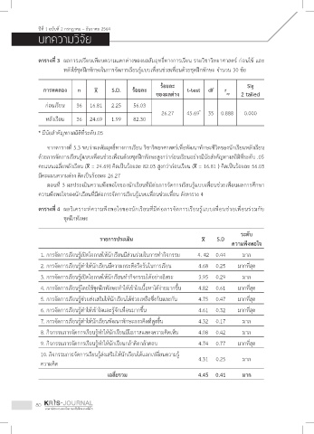 จากตารางท 5.3 พบว่าผลสัมฤทธ์ทางการเรียน วิชาวิทยาศาสตร์เพ่อพัฒนาทักษะชีวิตของนักเรียนหลังเรียน