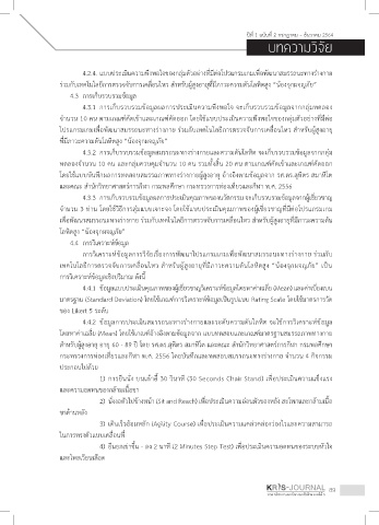 4.3.2 การเก็บรวบรวมข้อมูลสมรรถนะทางร่างกายและความดันโลหิต จะเก็บรวบรวมข้อมูลจากกลุ่ม