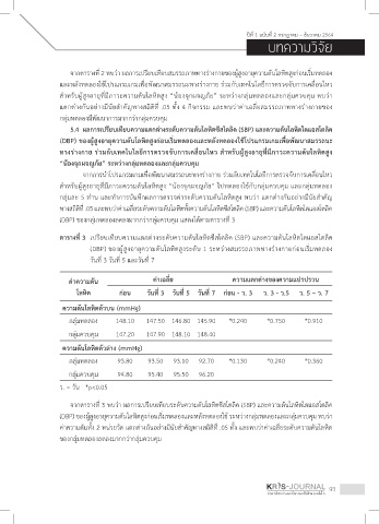 (DBP) ของกลุ่มทดลองลดลงมากกว่ากลุ่มควบคุม แสดงได้ตามตารางที่ 3