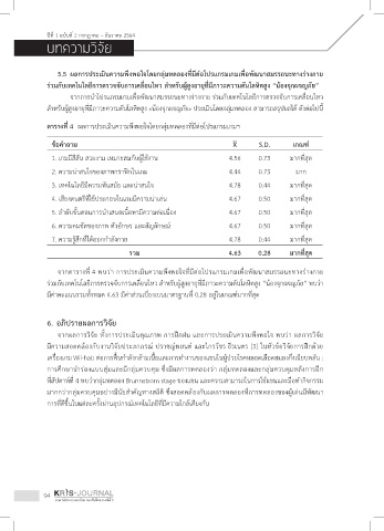 5.5 ผลการประเมินความพึงพอใจโดยกลุ่มทดลองท่มีต่อโปรแกรมเกมเพ่อพัฒนาสมรรถนะทางร่างกาย