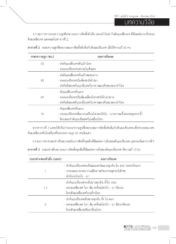 ตารางที่ 2 ระยะความสูงที่เหมาะสมการติดตั้งตัวสั่นกับต้นมะเขือเทศ เมื่อใช้ความถี่ 10 Hz