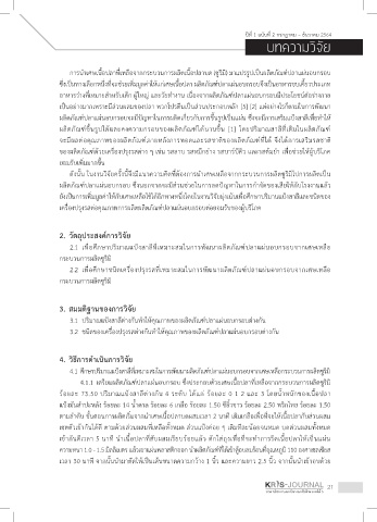 2.1 เพอศกษาปรมาณแป้งสาลทเหมาะสมในการพฒนาผลตภณฑ์ปลาแผ่นอบกรอบจากเศษเหลอ