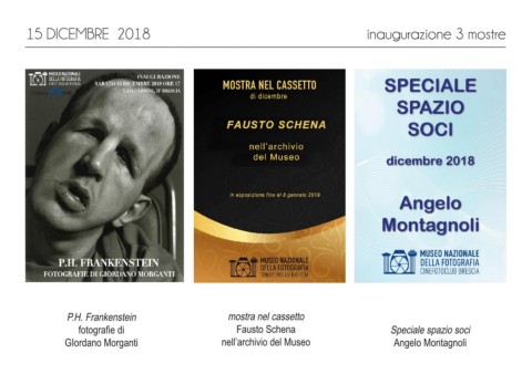 15 DICEMBRE 2018 inaugurazione 3 mostre P.H. Frankenstein mostra nel cassetto fotografie di Fausto Schena Speciale spazio soci GIordano Morganti nell’archivio del Museo Angelo Montagnoli