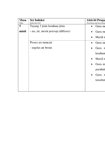 Masa Set Induksi Aktiviti Pengajaran dan Pembelajaran Catatan