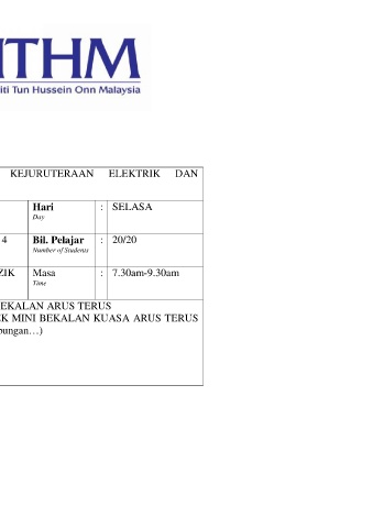 Kursus/ Mata Pelajaran : PENGAJIAN KEJURUTERAAN ELEKTRIK DAN