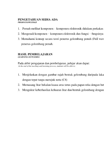 3. Mengukur keberhasilan keluaran litar dan bentuk gelombang dengan betul tanpa merujuk buku teks (P5).