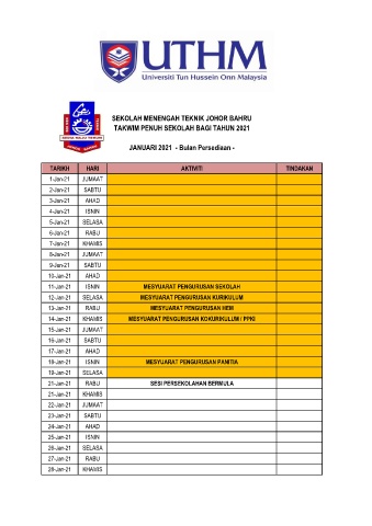 TAKWIM PENUH SEKOLAH BAGI TAHUN 2021