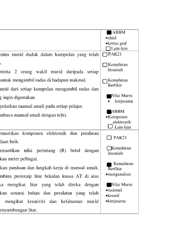 - Papan Menggunakan panduan dan langkah kerja di manual amali, Berfikir