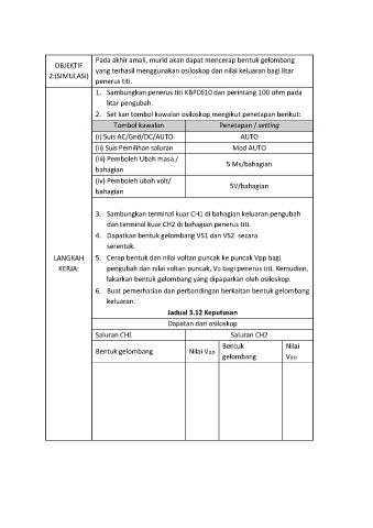 LANGKAH |5. Cerap bentuk dan nilai voltan puncak ke puncak Vpp bagi