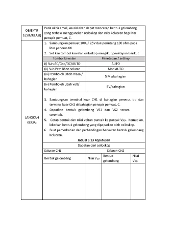 KERIA: 5. Cerap bentuk dan nilai voltan puncak ke puncak Vpp. Kemudian,