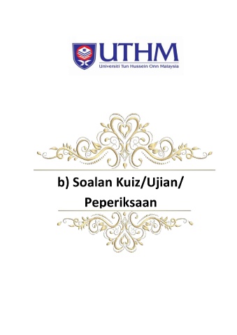 UTHM Universiti Tun Hussein Onn Malaysia b) Soalan Kuiz/Ujian/ Peperiksaan