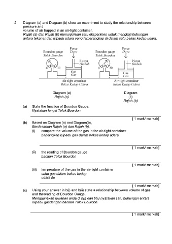 Rajah (a) dan Rajah (b) menunjukkan satu eksperimen untuk mengkaji hubungan