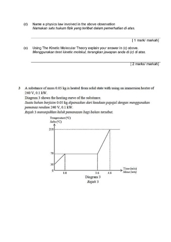 Suatu bahan berjisim 0.05 kg dipanaskan dari keadaan pepejal dengan menggunakan