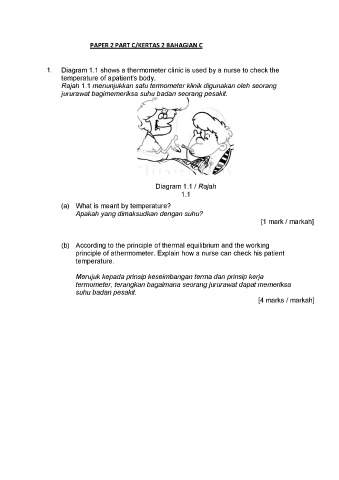 1. Diagram 1.1 shows a thermometer clinic is used by a nurse to check the