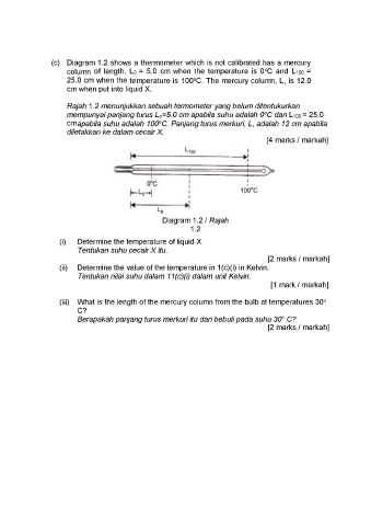Rajah 1.2 menunjukkan sebuah termometer yang belum ditentukurkan