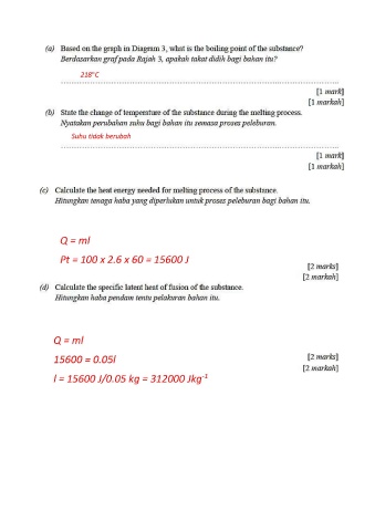 Hitungkan tenaga haba yang diperlukan untuk proses peleburan bagi bahan itu.