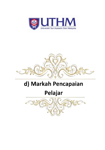 UTHM Universiti Tun Hussein Onn Malaysia pi al 7 , oY XS d) Markah Pencapaian