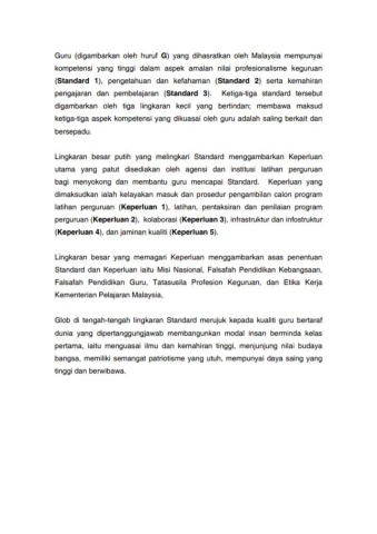 Glob di tengah-tengah lingkaran Standard merujuk kepada kualiti guru bertaraf