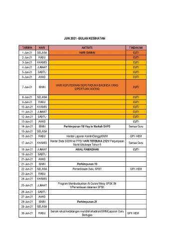 14-Jun-21 ISNIN Perhimpunan 18/ Key in Markah SAPS Semua Guru