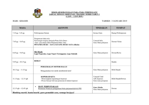JADUAL MINGGU ORIENTASI / TRANSISI MURID TAHUN 1