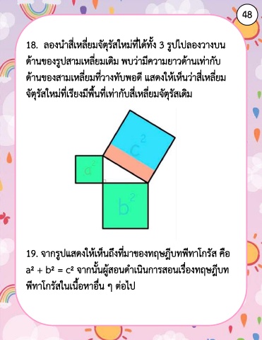 a² + b² = c² จากนั้นผู้สอนด าเนินการสอนเรื่องทฤษฎีบท