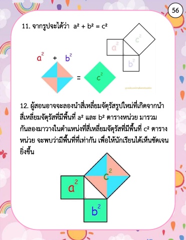 12. ผู้สอนอาจจะลองน าสี่เหลี่ยมจัตุรัสรูปใหม่ที่เกิดจากน า