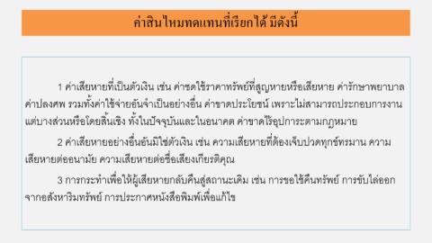 1 ค่าเสียหายทเปนตัวเงิน เช่น ค่าชดใชราคาทรพยทสูญหายหรอเสียหาย ค่ารกษาพยาบาล