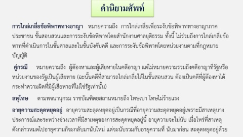 ประชาชน ชั้นสอบสวนและการระงับข้อพิพาทโดยส านักงานศาลยุติธรรม ทั้งนี้ ไม่ร่วมถึงการไกล่เกลี่ยข้อ