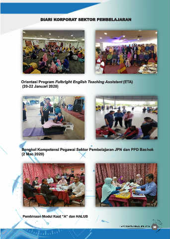 DIARI KORPORAT SEKTOR PEMBELAJARAN Orientasi Program Fulbright English Teaching Assistant (ETA) (20-22 Januari 2020) Bengkel Kompetensi Pegawai Sektor Pembelajaran JPN dan PPD Bachok (2 Mac 2020) Pembinaan Modul Kaut “A” dan HALUS 20