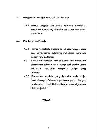 4.3.1. Premis hendaklah dibersihkan selepas tamat setiap