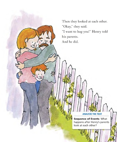 Then they looked at each other. "Okay," they said. "I want to hug you!" Henry told his parents. And he did. ANALYZE THE TEXT Sequence of Events What happens after Henry’s parents look at each other? 19