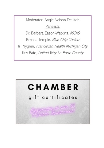 Moderator: Angie Nelson Deuitch Panelists Dr. Barbara Eason-Watkins, MCAS Brenda Temple, Blue Chip Casino Jill Nygren, Franciscan Health Michigan City Kris Pate, United Way La Porte County